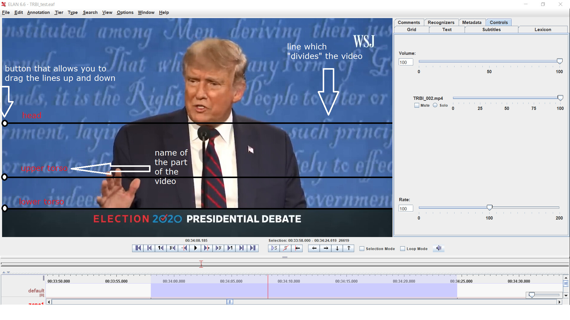 I’m conducting a small experiment with the help of ELAN. I intend to count gestures made by two speakers on a video, and then divide the gestures depending on the type of gesture space where they were performed.