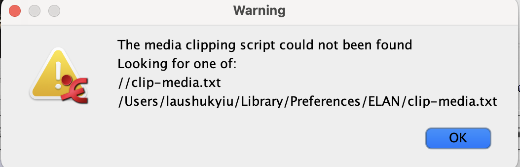I am macOS Sonoma 14.5 using ELAN 6.8. I got a problem using the media clipping function. I couldn’t find the ELAN folder in the Preferences folder in the library, so I created a “ELAN” folder in Preferences folder and placed the .scpt files and the “clip-media.txt” file in the folder that I created. (Macintosh HD>Library>Preferences>ELAN)
