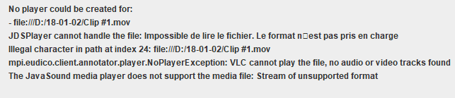 I have videos I’m supposed to work on Elan with, but when i try to create a new file with them, i get this message of error :